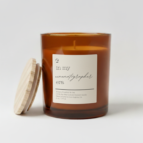 “In My Cinematographer Era” Luxury Candle – Leather & Oak | Eucalyptus & Rose